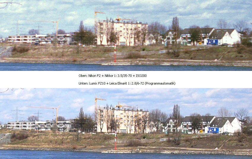 Nikon F2 mit NIKKOR-Zoom 1:3.5/35- 70mm. Optisches Filter: ROWI Skylight 1A. Aufnahme: Blende 8 bei 1/1000s, Film: Ferrania Solaris FG Plus 200. Das NIKKOR-Zoom wurde vom Verfasser mit einem Leica-Objektiv 1:2.0/50 mm auf einem M6-Gehäuse verglichen: |mehr| | Das im 4:3-Seitenverhältnis aufgenommene Bild der Lumix DMC-FZ10 (Panasonic, 4 Megapixel) mit einem Leica DC Vario-Elmarit 1:2.8/6-72mm. Optisches Filter: Hama UV390 (0-Haze). Aufnahmedaten: Blende 5,2 bei 1/500s; ISO50. |