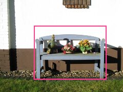 Der 12-MP-CCD-Sensor der Canon Ixus 960IS wartet mit einer Sensorelementdichte von knapp 0,29 Millionen Zellen pro Quadratmillimeter auf. Dieser Wert entspricht einem Sensorelementraster von nur ca. 1,9 µm. | Das Bildmotiv der Canon, darin das rot umrahmte Aufnahmebild der 4-MP-Lumix. Mit rund 0,17 Millionen Sensorzellen pro Quadratmillimeter (Elementraster ca. 2,4 µm) musste diese Bridge-Kamera das ausgewählte Drittel der Motivfläche aufnehmen. |